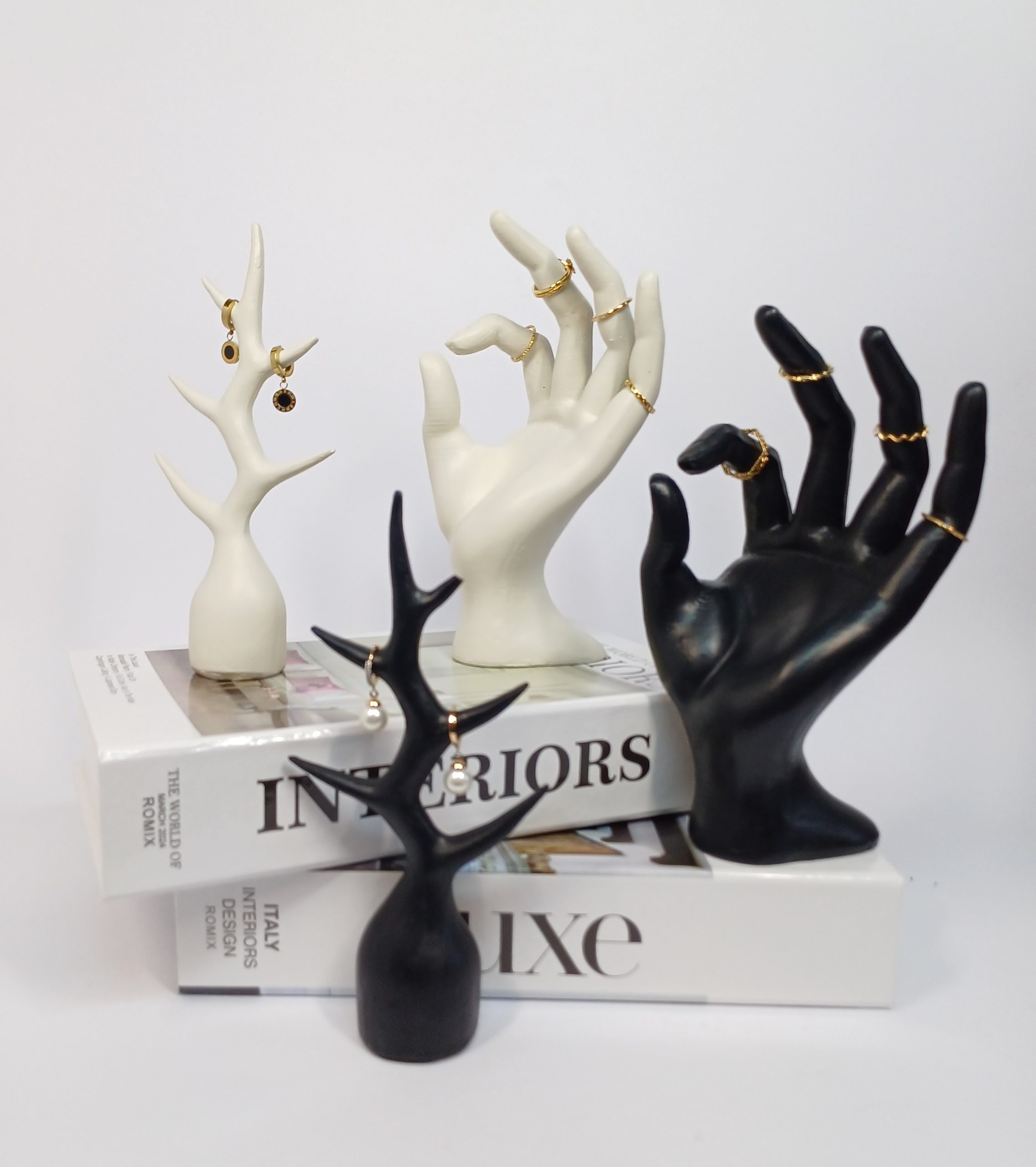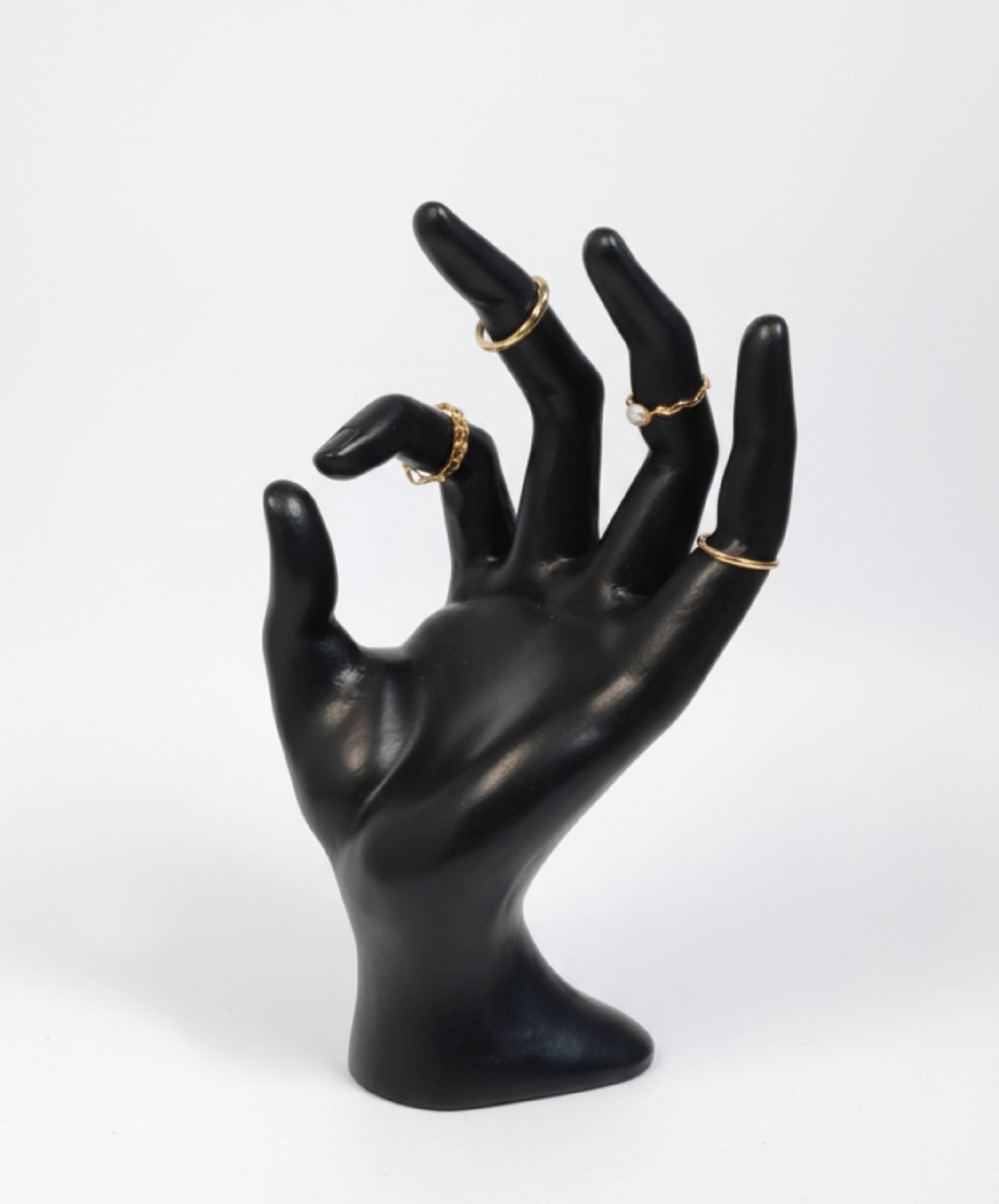 تجربهی استفاده از استند جواهرات و انگشتر رومیزی، نظم و زیبایی را به میز و دکوراسیون شما میآورد. این استند با طراحی شیک به شکل دست، به شما این امکان را میدهد که انگشترها و زیورآلات خود را به صورت مرتب و قابل نمایش بچینید. همچنین به جلوگیری از گمشدن و آسیبدیدگی جواهرات کمک میکند.