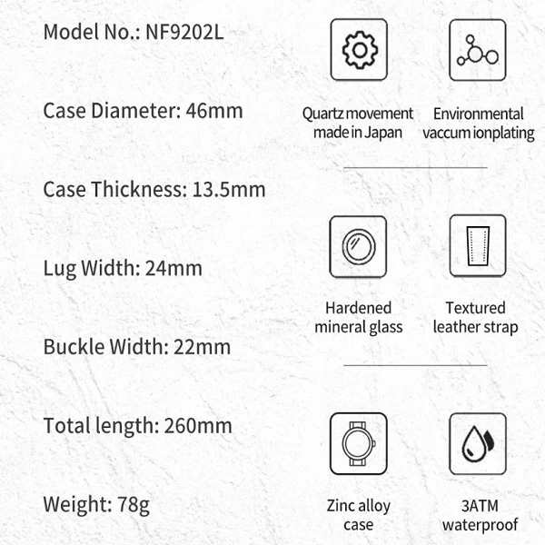 طراحی شیک و جذاب ساعت مچی عقربهای مردانه نیوی فورس مدل 9202GY با طراحی شیک و جذاب خود، مناسب هر سلیقهای است.