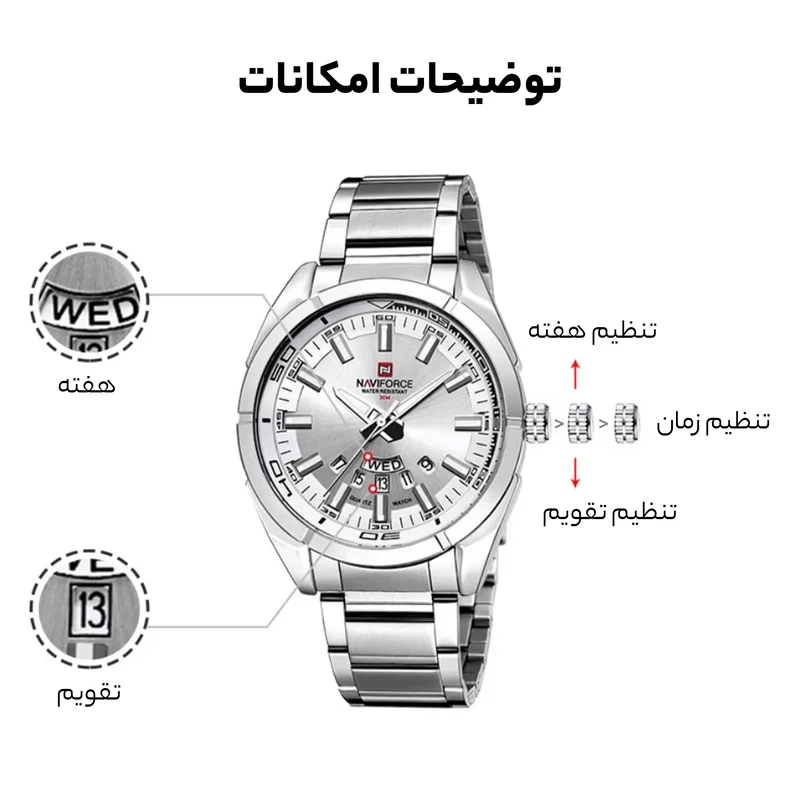 عقربه‌های شب‌تاب آن نیز به شما امکان مشاهده زمان را حتی در تاریکی فراهم می‌کند. انتخاب هوشمندانهاگر به دنبال یک ساعت با دوام و سبک کلاسیک هستید، نیوی فورس مدل NF9038-SW گزینه‌ای بی‌نظیر برای شماست. شما با انتخاب این محصول، نه تنها به ظاهری شیک و مدرن دست خواهید یافت، بلکه اعتماد به نفس و حس خاصی از قدرت و شخصیت را نیز تجربه خواهید کرد.